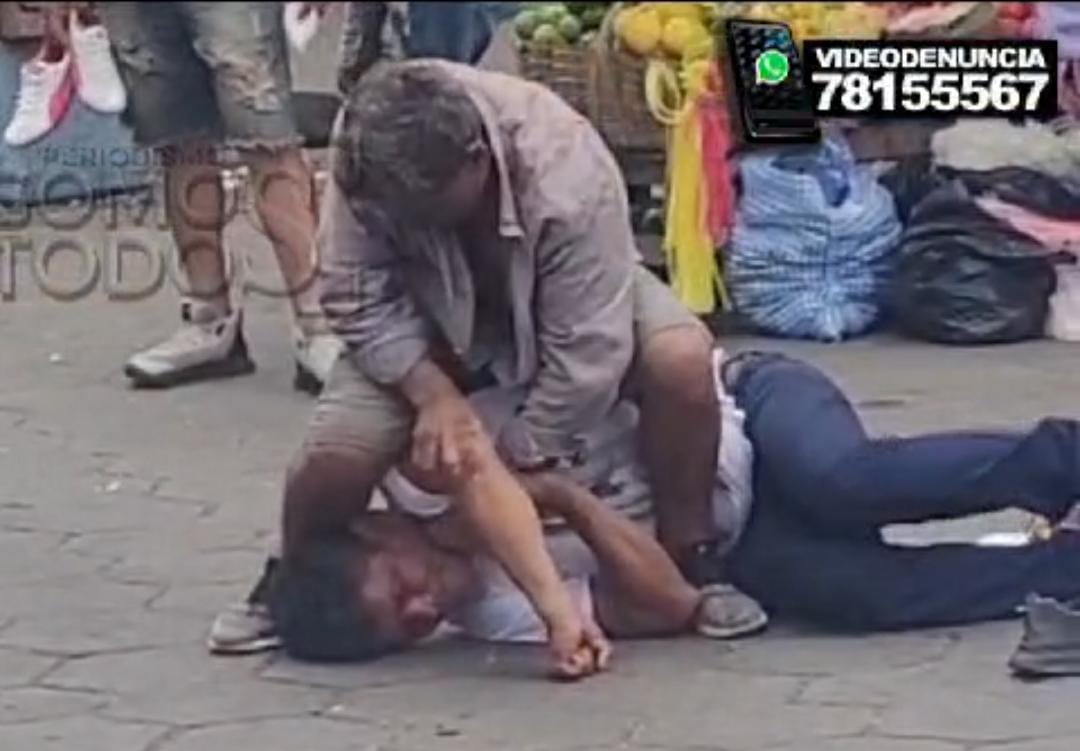 Delante de los comerciantes ambos personajes se agarrón a golpeas a duras penas por el estado en el que se encontraban.