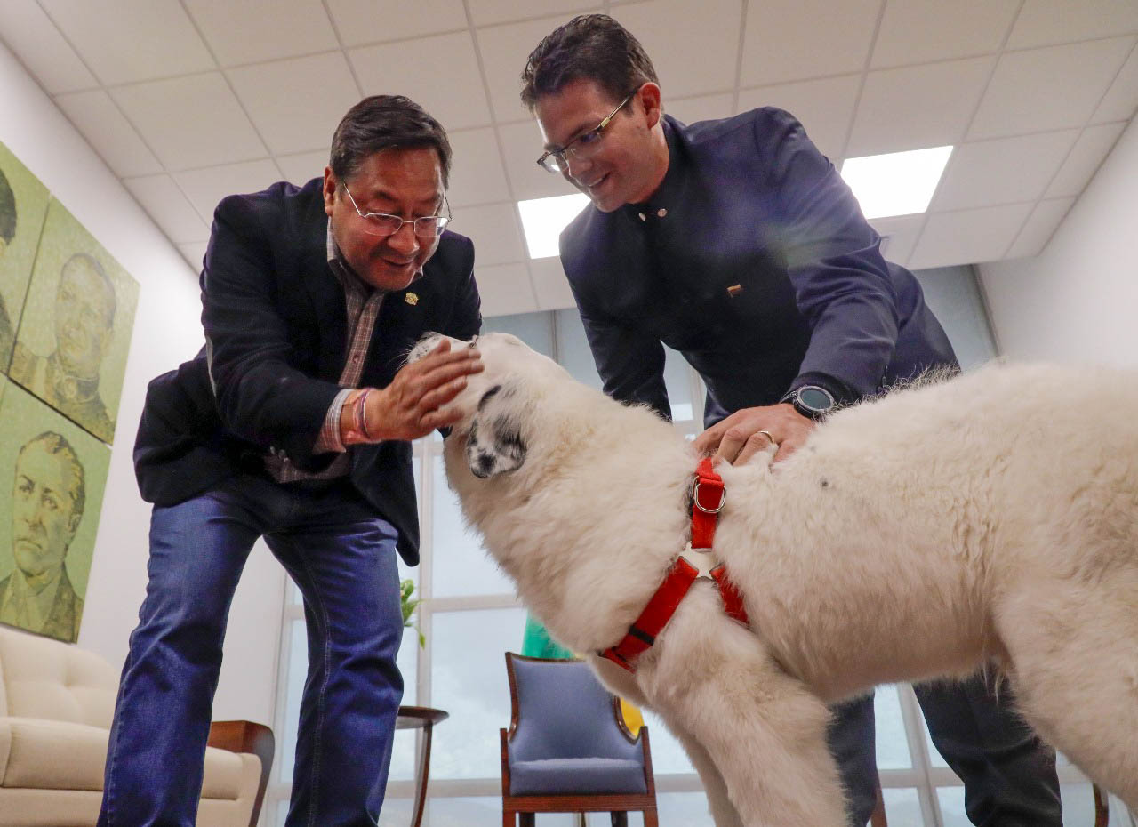 El presidente Luis Arce recibió a Boyacá, un perro de raza mucuchíes originario de Venezuela, que fue enviado como obsequio por su homólogo Nicolás Maduro. «Un bello gesto de amistad entre dos pueblos hermanos», publicó el mandatario boliviano en sus redes sociales.