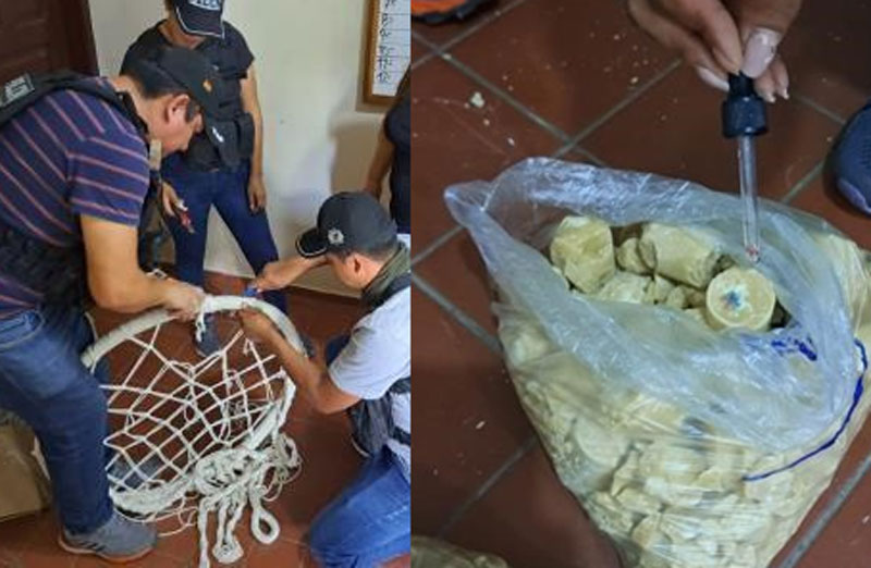 La pasta base de cocaína que se encontraba en cinco paquetes de cartón y hábilmente camuflada entre hamacas, indicó el Viceministro de Sustancias Controladas, que en sus redes sociales publicó las fotos respectivas.