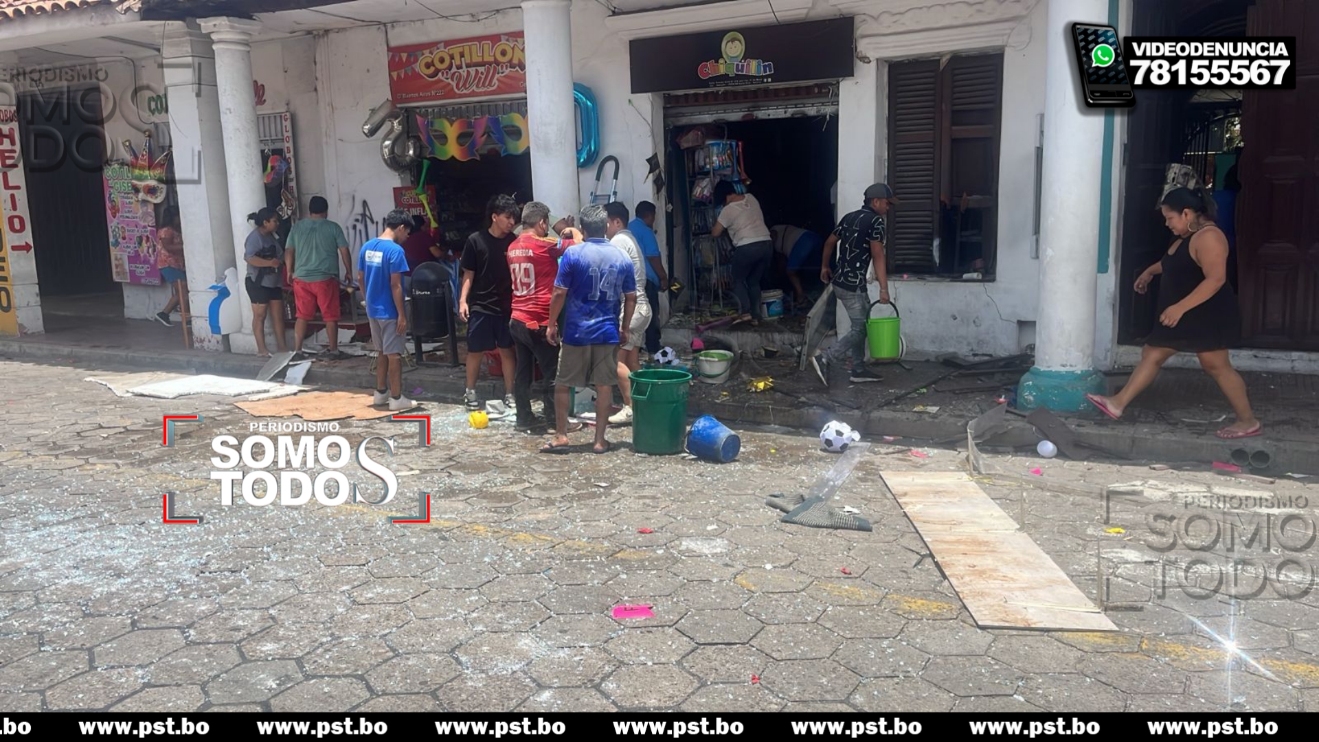 Este  sábado se registró una explosión en la calle Buenos Aires en el sector de cotillones en el departamento cruceño.