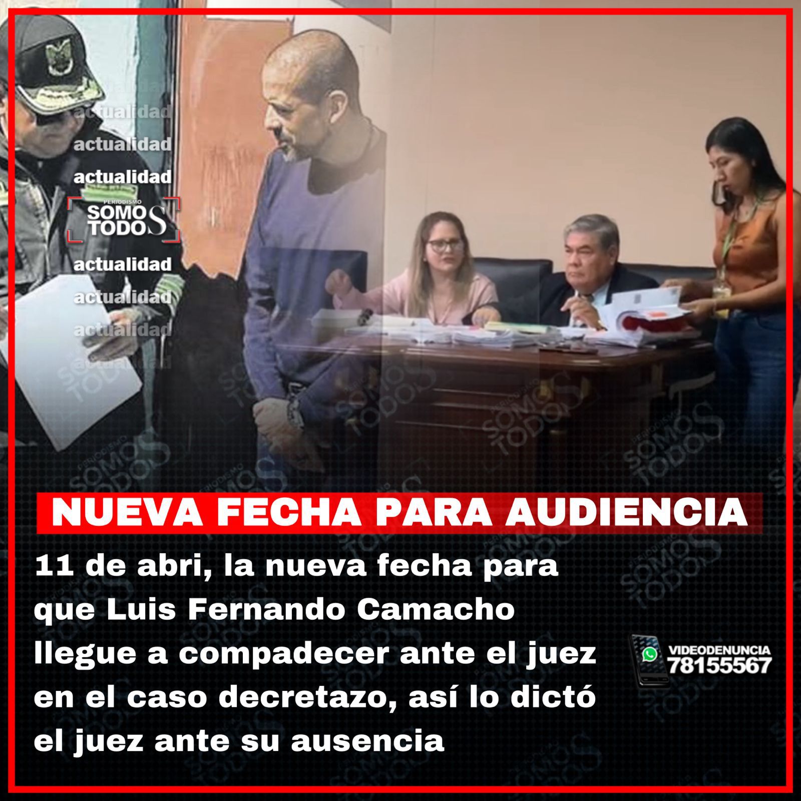 CIUDAD #LO ÚLTIMO, ANUNCIAN NUEVA FECHA PARA AUDIENCIA Published 2 años ago on 11/03/2024 By Emilio Ramirez 11 de abril del presente año, es la nueva fecha para la audiencia de Luis Fernando Camacho. Comparte esto: Haz clic para compartir en WhatsApp (Se abre en una ventana nueva) WhatsApp Haz clic para compartir en Facebook (Se abre en una ventana nueva) Facebook Haz clic para compartir en X (Se abre en una ventana nueva) X Haz clic para enviar un enlace por correo electrónico a un amigo (Se abre en una ventana nueva) Correo electrónico Haz clic para compartir en Telegram (Se abre en una ventana nueva) Telegram Related Topics:BOLIVIACASOLUIS FERNANDO CAMACHOSCZ Up Next LA OCASIÓN HACE AL LADRÓN Don't Miss #NOTICIA DE ÚLTIMO MOMENTO Emilio Ramirez Continue Reading Advertisement You may like DE VÍCTIMA A VICTIMARIA: DENUNCIAN PRESUNTO TRÁFICO DE INFLUENCIAS TRAS AGRESIÓN EN CIUDAD SATÉLITE “FALLAS INUSUALES” EN EL AVIÓN PRESIDENCIAL RETRASAN VIAJE DE RODRIGO PAZ A MIAMI MINISTRO MEDINACELI AFIRMA QUE DORGATHEN FUE ALERTADO EN 2025 SOBRE PROBLEMAS EN LA GASOLINA SANTA CRUZ DEMANDA 2,8 MILLONES DE LITROS DE GASOLINA; YPFB ANUNCIA DESPACHO DE 2 MILLONES SE BUSCA A DOS MENORES DESAPARECIDAS EN EL PLAN 3.000 “CASI A OSCURAS”: PRENSA INTERNACIONAL CRITICA LA ILUMINACIÓN DEL TAHUICHI EN EL BLOOMING VS. SAN ANTONIO Click to comment Leave a Reply Cancelar la respuestaTu dirección de correo electrónico no será publicada. Los campos obligatorios están marcados con *Comentario * Nombre Correo electrónico Web Guarda mi nombre, correo electrónico y web en este navegador para la próxima vez que comente.