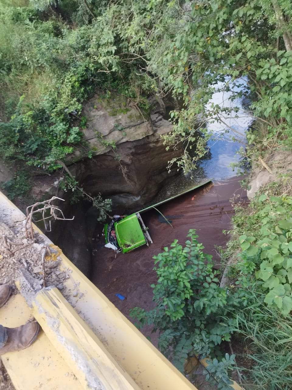 CAE UN CAMIÓN DESDE UN PUENTE EN LA ANGOSTURA