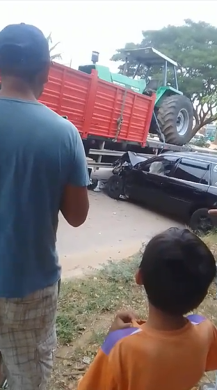 VEHÍCULO TERMINA DEBAJO DE UN CAMIÓN EN LA AV. TRES PASOS AL FRENTE Y 8VO ANILLO