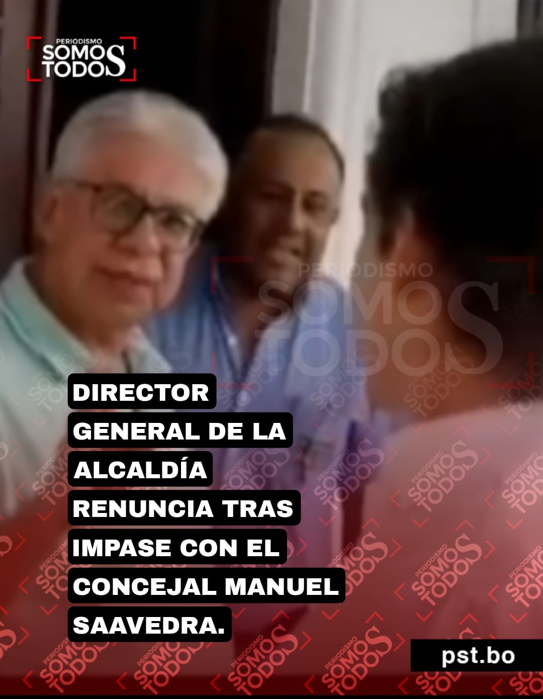 En los últimos minutos se ha oficializado la renuncia de Juan Carlos Solares, Director General quien días atrás tuvo un impase con el Concejal Manuel Saavedra, dónde se dijeron duros calificativos, ambos por separado anunciaron demandas penales, sin embargo esto al parecer afecto la estabilidad de Solares en la alcaldía.
