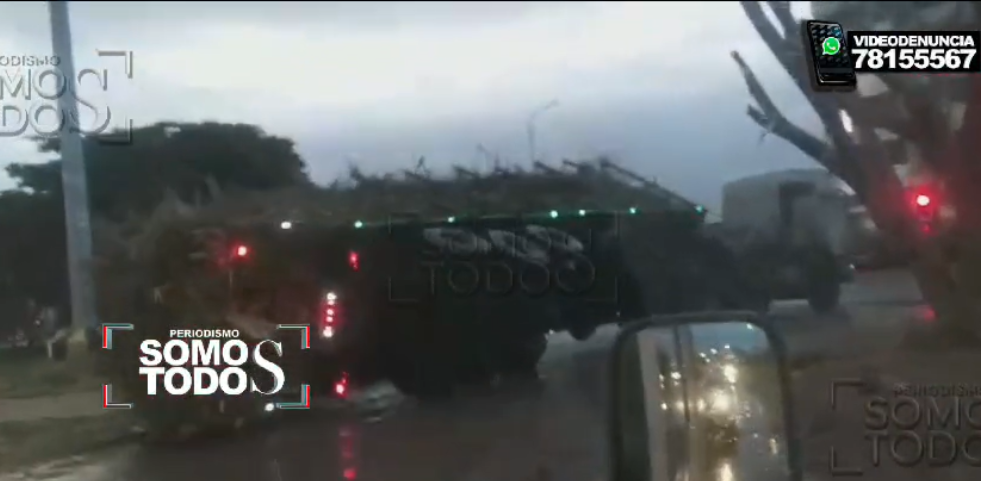 El accidente de tránsito fue grabado por un conductor, la carga hizo que la chata del camión se desprenda de la cabina y vuelque, en un desvío del 4to anillo que conecta con la Av. Brasil en el barrio Chacarilla. Afortunadamente en este hecho solo se registraron daños materiales.