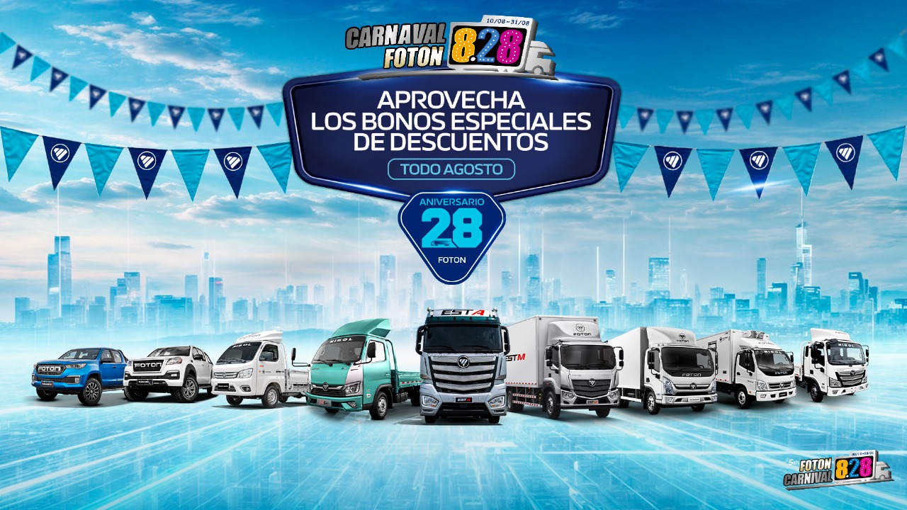 Como parte de esta celebración, FOTON ha preparado un conjunto de ofertas y beneficios especiales para sus clientes. Durante todo agosto, los compradores podrán acceder a bonos de descuento exclusivos en la compra de vehículos nuevos, repuestos y servicios técnicos en Todas las sucursales de NIBOL a nivel nacional.