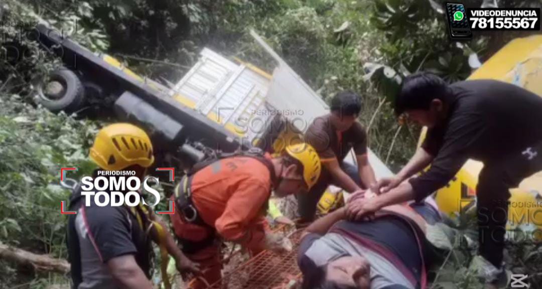 DESGARRADOR ACCIDENTE: CAMIÓN SE EMBARRANCA EN LA RUTA A CARANAVI, DEJA HERIDOS Y POSIBLES MUERTOS