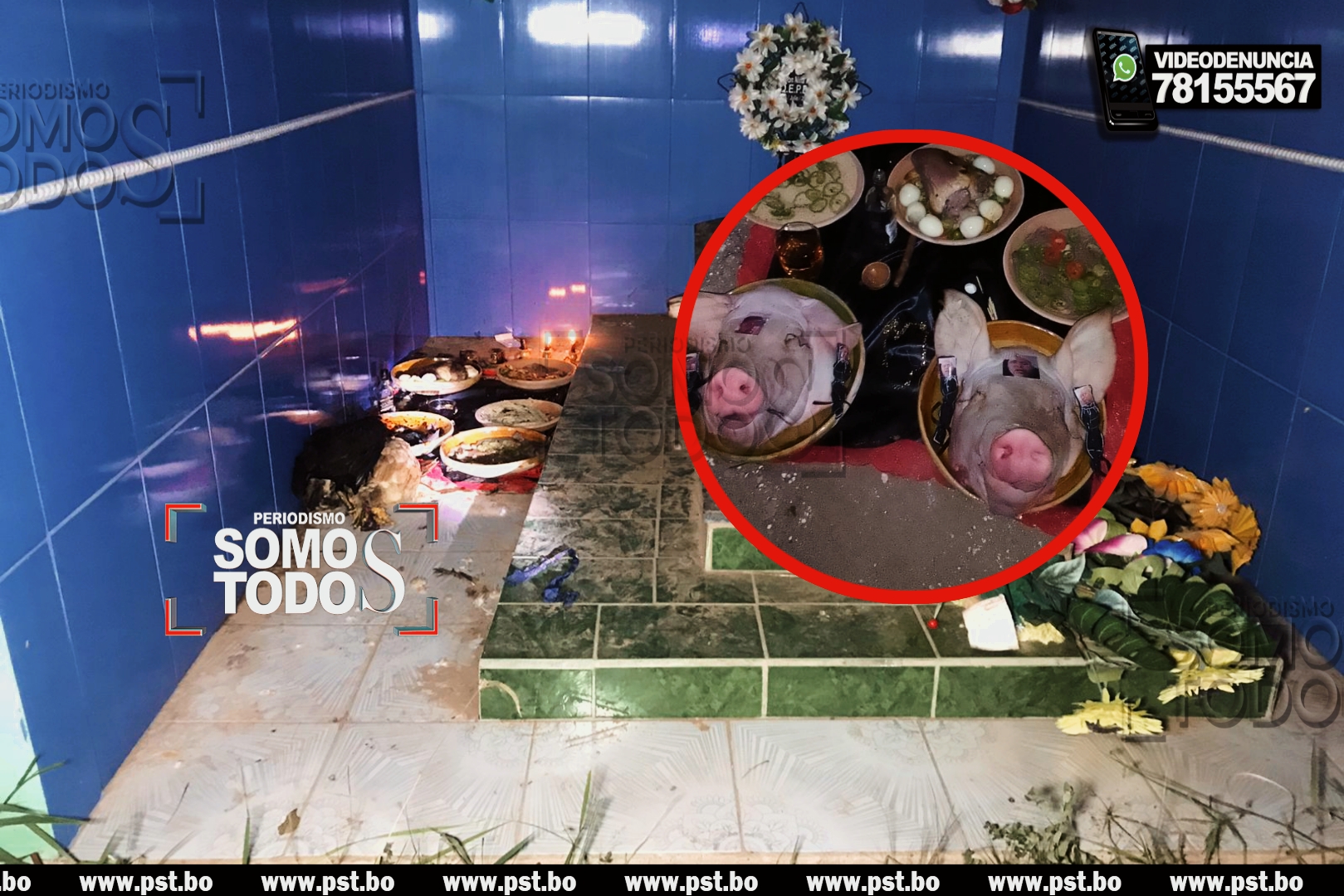 ‘¡TERROR EN COTOCA! HALLAN ALTAR SATÁNICO CON CABEZAS DE CERDO, SANGRE Y RITUALES DE DESTRUCCIÓN EN CEMENTERIO’