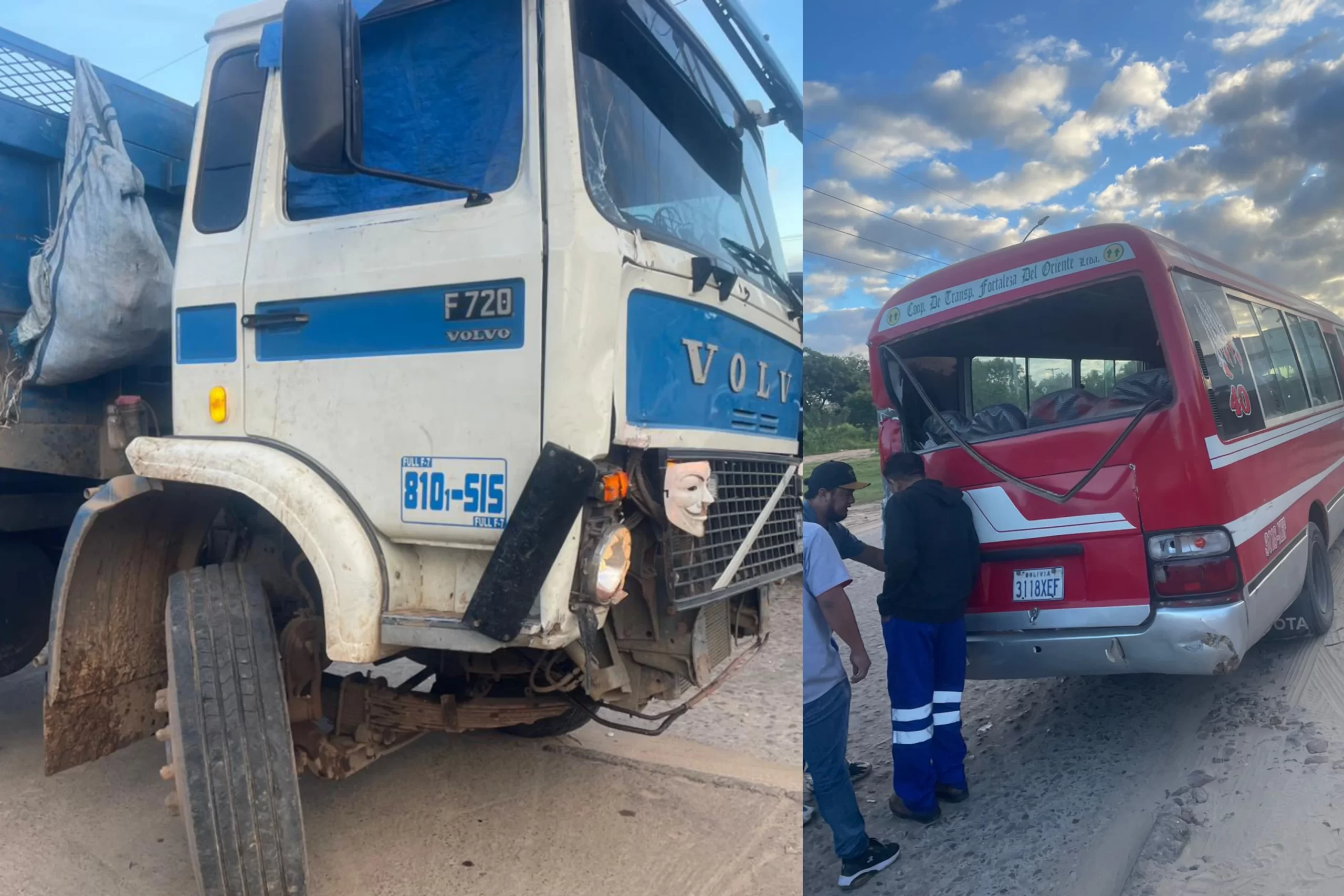 VIOLENTO CHOQUE ENTRE CAMIÓN Y MICROBÚS DEJA SUSTO Y DAÑOS EN EL SEXTO ANILLO DE SANTA CRUZ