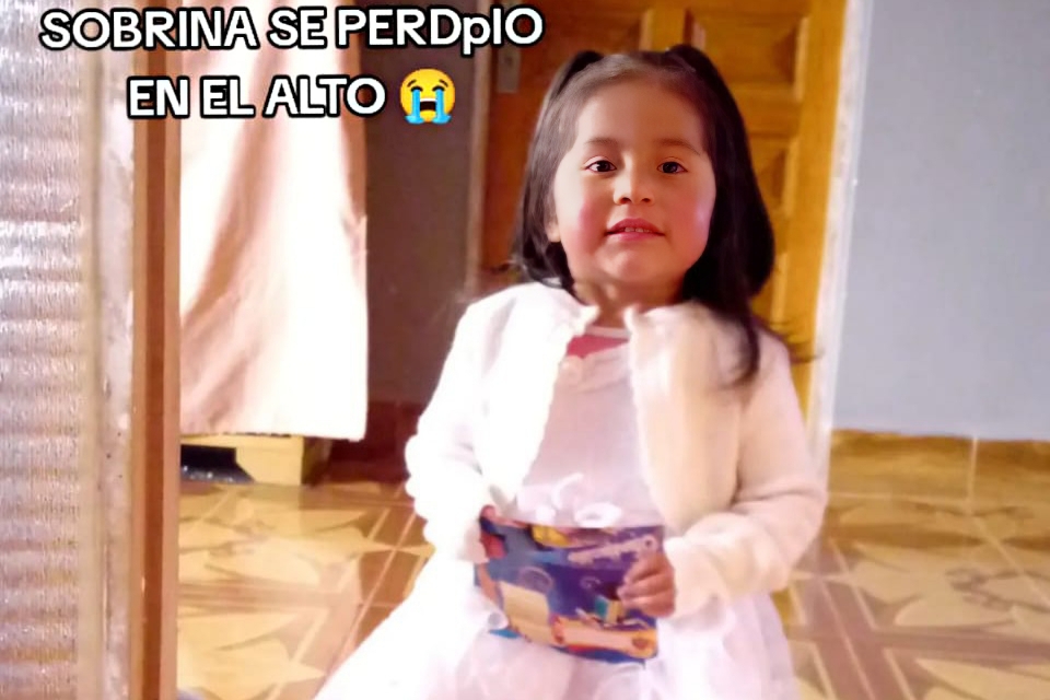 La menor vestía una chompa rosada, pantalón guindo y botas al momento de desaparecer. Su tía difundió una imagen reciente de la niña y pidió ayuda a la población: “Por favor ayúdennos a encontrar a mi sobrina. Se perdió en El Alto”, señala el mensaje compartido en redes sociales junto a una fotografía de la menor.