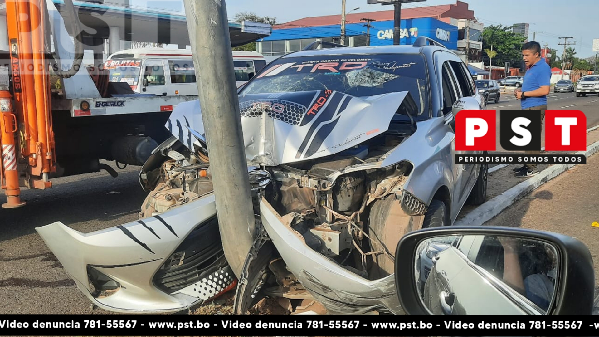 Un violento accidente de tránsito sorprendió a vecinos y conductores la mañana de este viernes en el segundo anillo, zona de El Trompillo, cuando un vehículo colisionó contra un poste de alumbrado público y dañó parcialmente otro motorizado que circulaba por la vía.