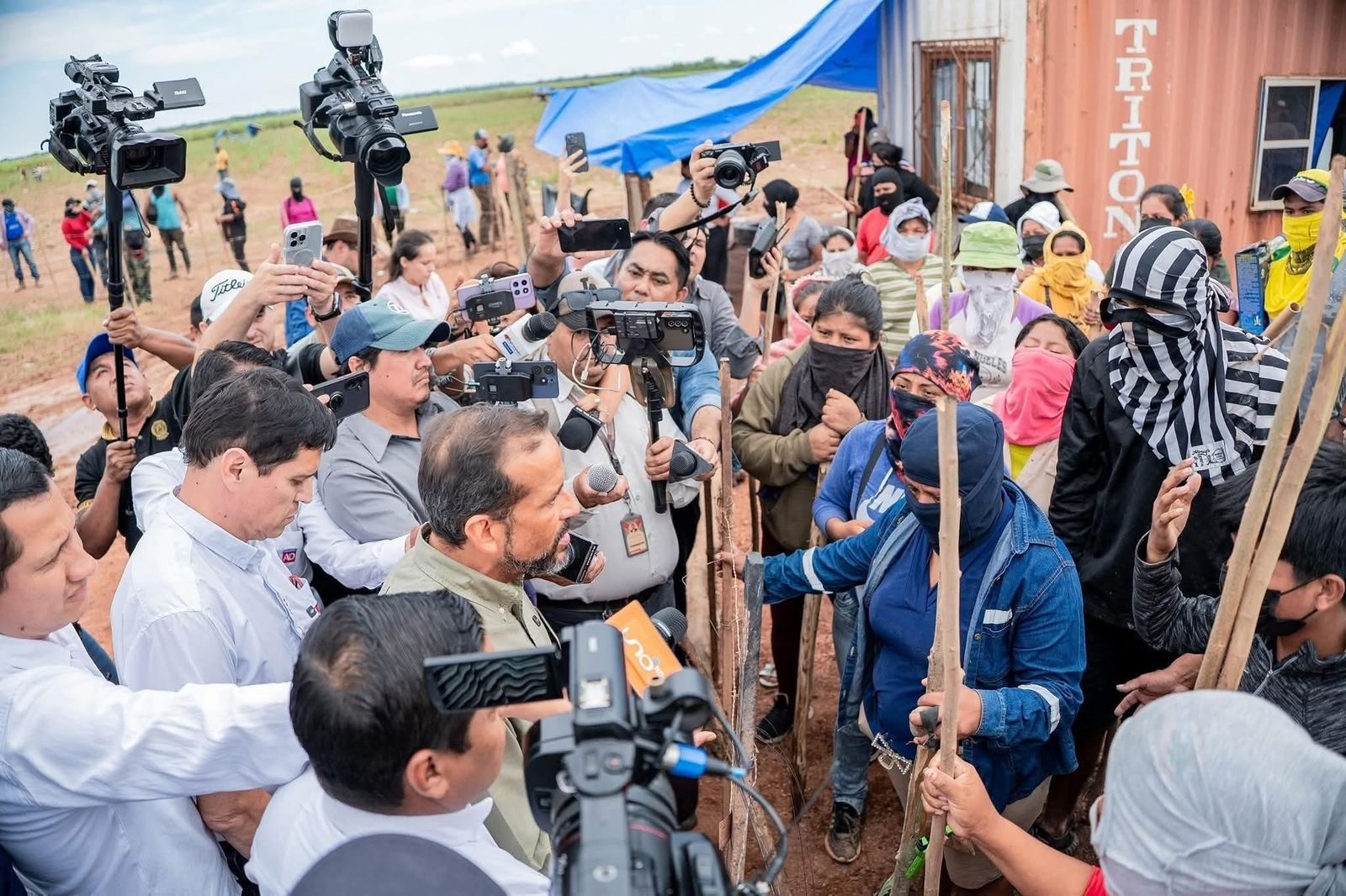 Imágenes difundidas muestran la magnitud del enfrentamiento, con vehículos tratando de ingresar al predio mientras los miembros del grupo forcejeaban con los atacantes. Tras la irrupción, Camacho logró entrar al interior de la propiedad, donde posteriormente se informó que quedó retenido. Por su parte, otros integrantes de la comitiva, así como autoridades departamentales, se vieron obligados a retirarse ante la violencia desatada, buscando resguardar su integridad.