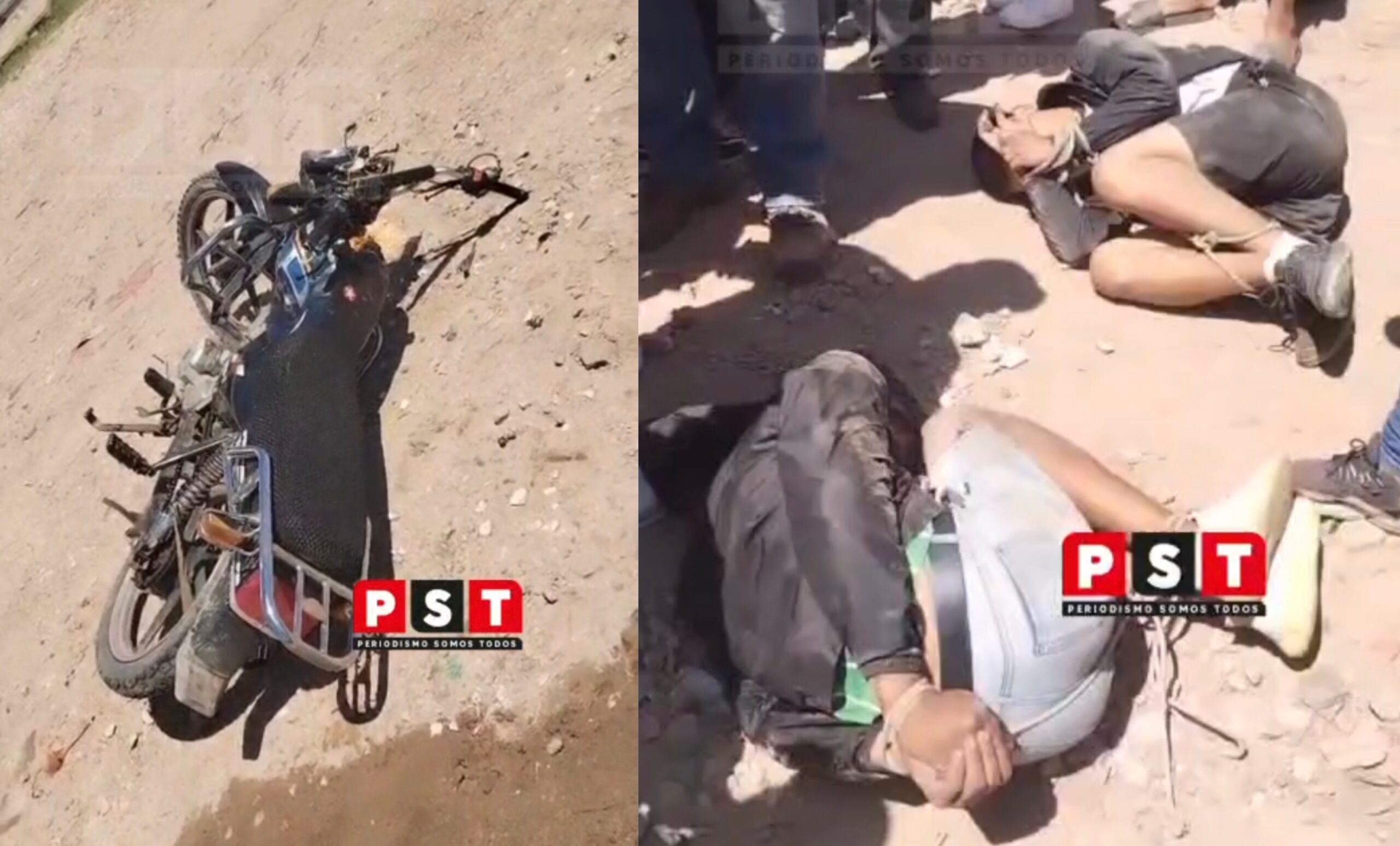 De acuerdo con testigos, los sospechosos se desplazaban a bordo de una motocicleta y habrían interceptado a un ciudadano para sustraerle sus pertenencias bajo amenazas con un arma de fuego y un cuchillo. Sin embargo, al intentar escapar, fueron perseguidos por varios vecinos que presenciaron el hecho y lograron reducirlos a pocos metros del lugar.